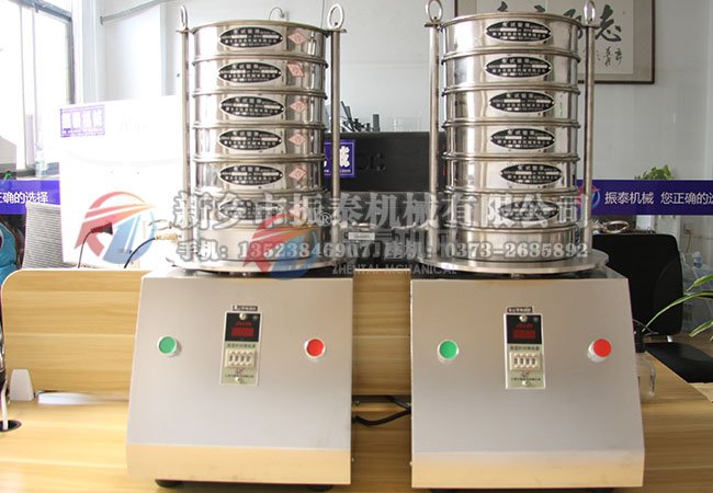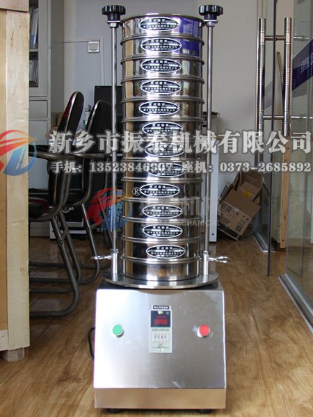 試驗篩是以YZU立式振動電機作為整機振動源,通過振動電機帶動上部振動盤振動,再通過振動盤傳導至放在振動盤上部的標準篩框上,然后由需要檢測目數的篩框把小于篩網孔徑的物料顆粒篩分至下層篩框,如此層層篩選,使每層試驗篩內只留相同粒度的物料,達到不同粒度的分離并確定此物料的粒度分布情況。