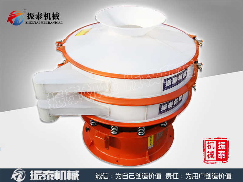 PP聚丙烯旋振篩是指用PP材質(聚丙烯)材質制作而成的旋振篩。PP聚丙烯旋振篩是專門針對不能與金屬接觸的物料篩選而設計的一款旋振篩。振泰機械生產的PP聚丙烯旋振篩,與物料接觸部分不含任何金屬成分。篩選效果好,粉末不飛揚,液體不外漏。可安裝1-5層篩網,將物料篩分幾個不同的規格。并且可按客戶需求特殊定制。