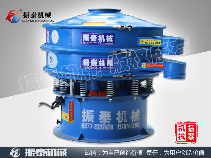 碳鋼旋振篩是輕型篩分設(shè)備,全身以及與物料接觸部分采用優(yōu)質(zhì)Q235碳鋼材質(zhì)。因其是最常見的旋振篩分設(shè)備,所以很多用戶直接稱其為旋振篩,也有部分地區(qū)用戶或旋振篩廠家稱其為圓形篩分機(jī)、篩粉機(jī)、振蕩篩等,振泰Q235旋振篩采用立式振動(dòng)電機(jī)作為激振源,電機(jī)上、下兩端安裝有偏心重錘,將電機(jī)的旋轉(zhuǎn)運(yùn)動(dòng)轉(zhuǎn)變?yōu)樗健⒋怪薄A斜的三次元運(yùn)動(dòng),再把這個(gè)運(yùn)動(dòng)傳遞給篩面,所以得名三次元旋振篩。